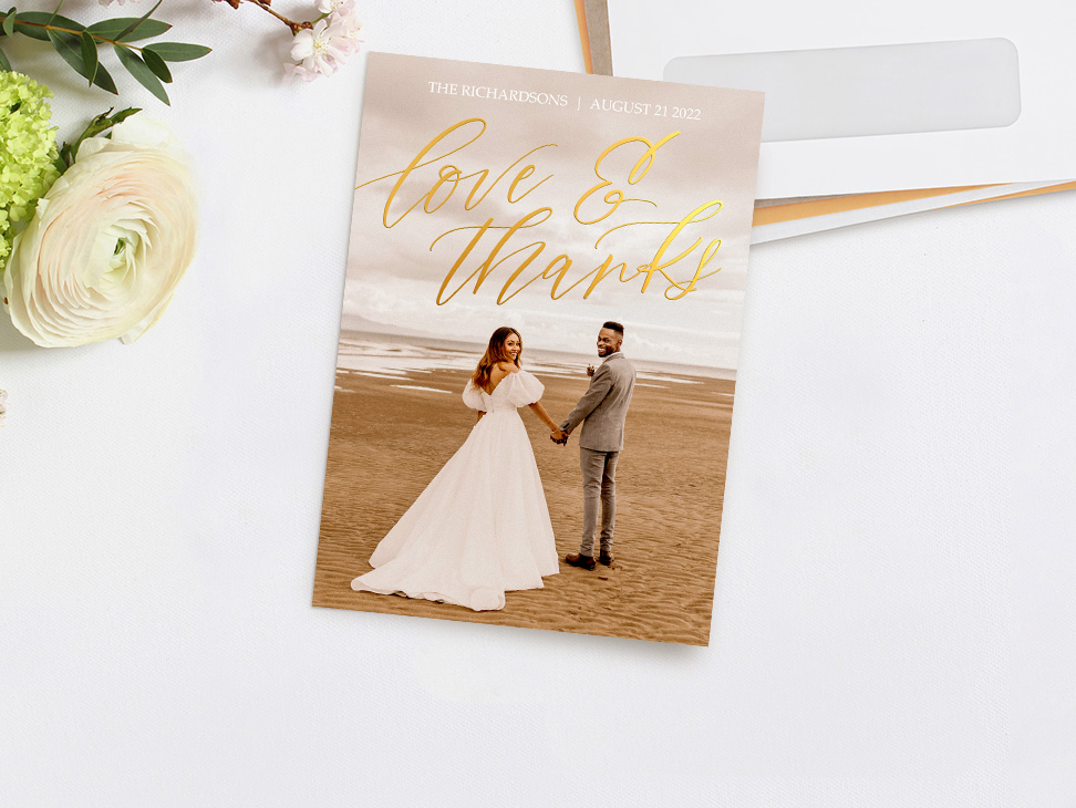 Design wedding stationery to fit the theme of your big day and keep everyone informed. Create everything from save the date cards to wedding invitations, matching wedding programmes and wrap everything up with wedding thank you cards all personalized and perfectly suited to you.
